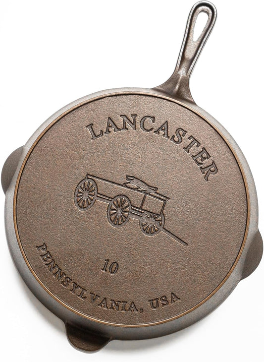 Lancaster Cast Iron No. 10 Skillet: Smooth-Machined 11-5/8" Pan, Pre-Seasoned, PFAS-Free Iron Pan Designed to Last Generations