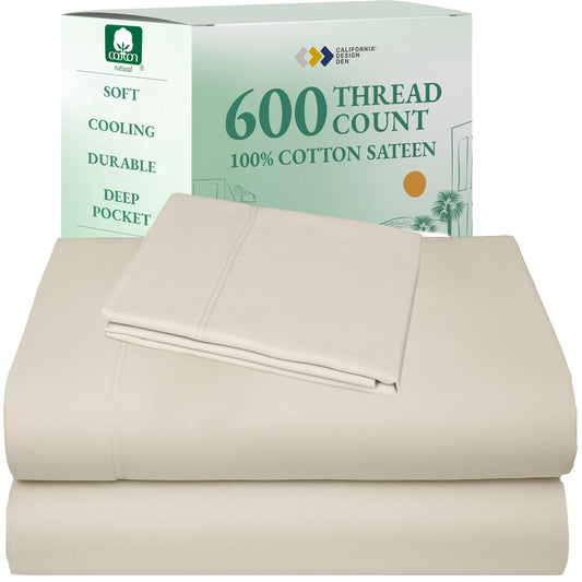 California Design Den 100% Cotton Sateen Sheets: 600 TC Luxury Set