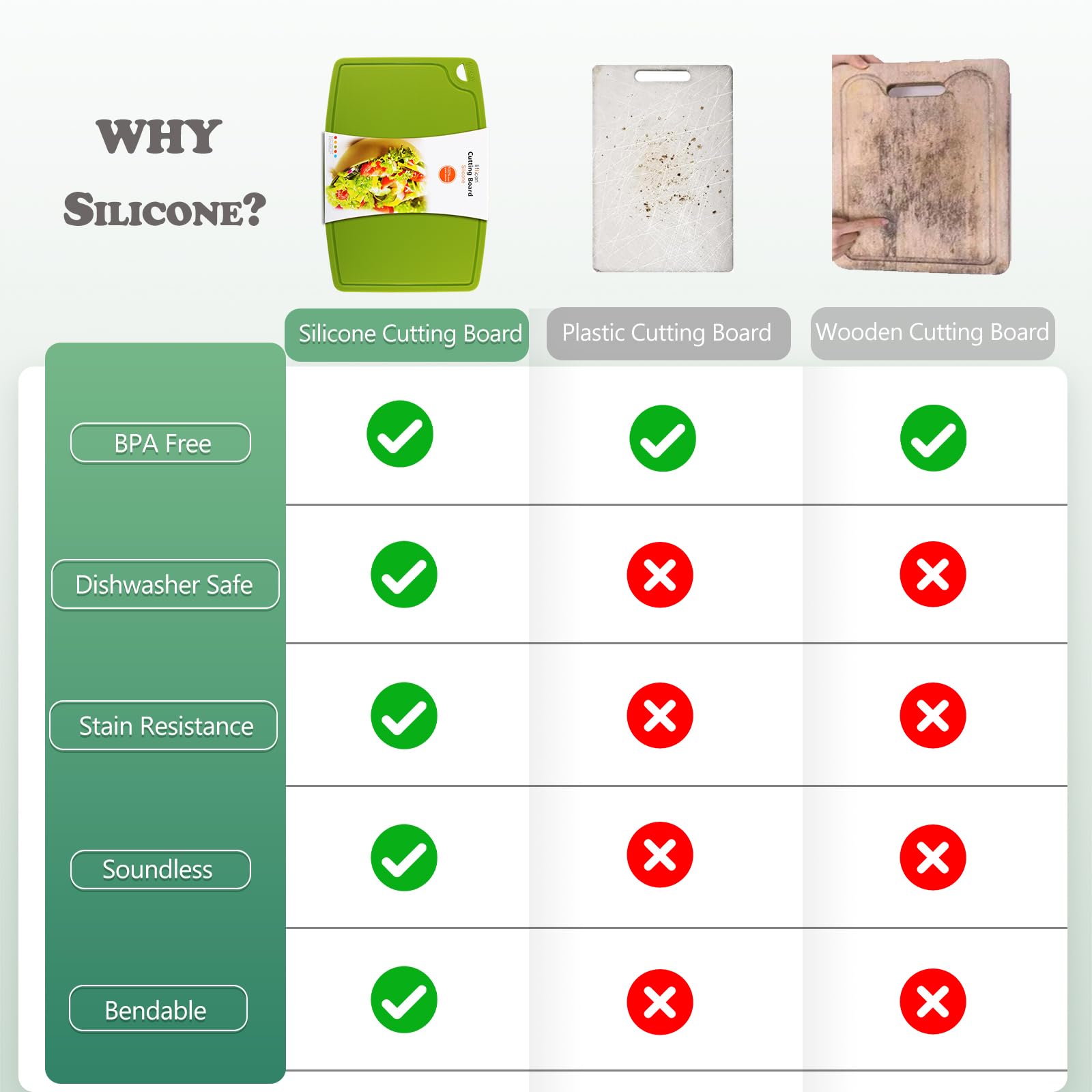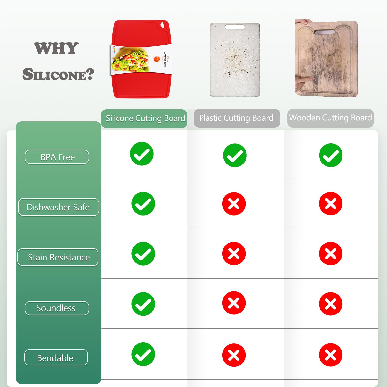 The Manufacturer Lie: "BPA-Free" is a safety claim that hides the bigger problem. Even without BPA, a plastic board is still made of chemicals that shed into your food as you cut. A silicone board is a chemical-free home product choice that is naturally safe because it’s made from sand-based minerals, not oil-based polymers.