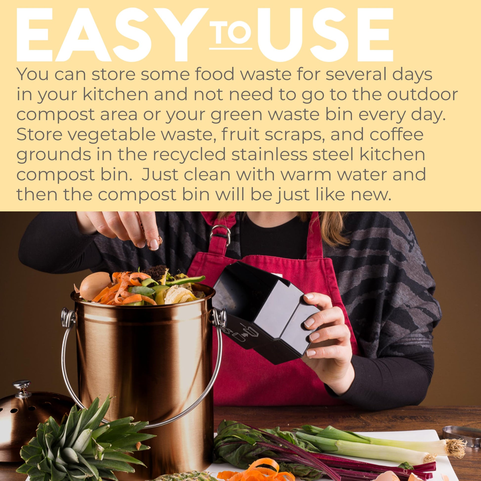The specialized manufacturing ensures a consistently hygienic experience, allowing you to simply rinse the smooth stainless steel interior and avoid the recurring waste of plastic bags.