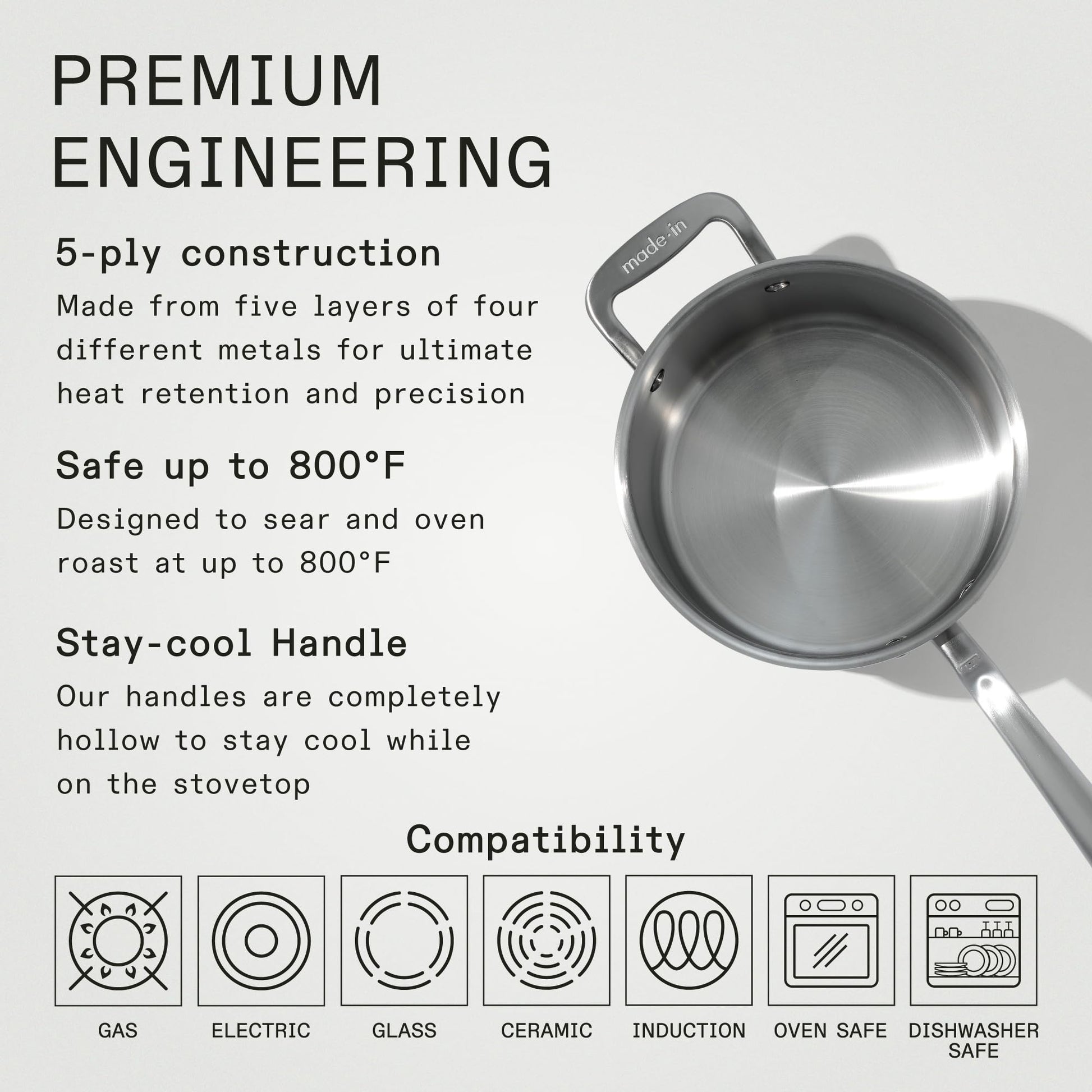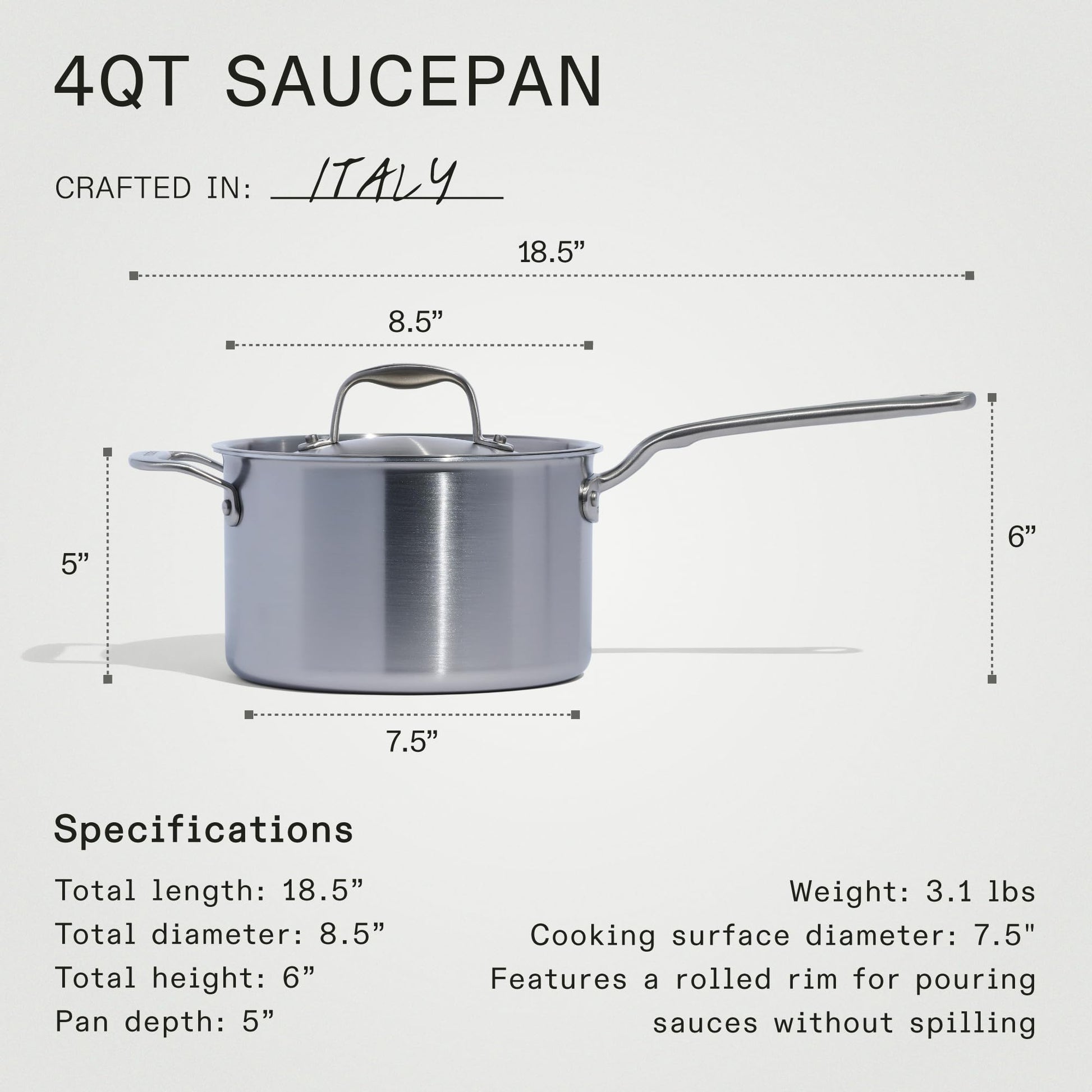 | The Made In 4 Quart Stainless Clad Saucepan provides phenomenal long-term financial value, proving to be the most cost-effective choice by saving consumers approximately $1,400.00 USD over a 50-year period. By investing once in professional Italian craftsmanship, you eliminate the high, compounding expense of purchasing dozens of short-lived, chemical-coated saucepans. |