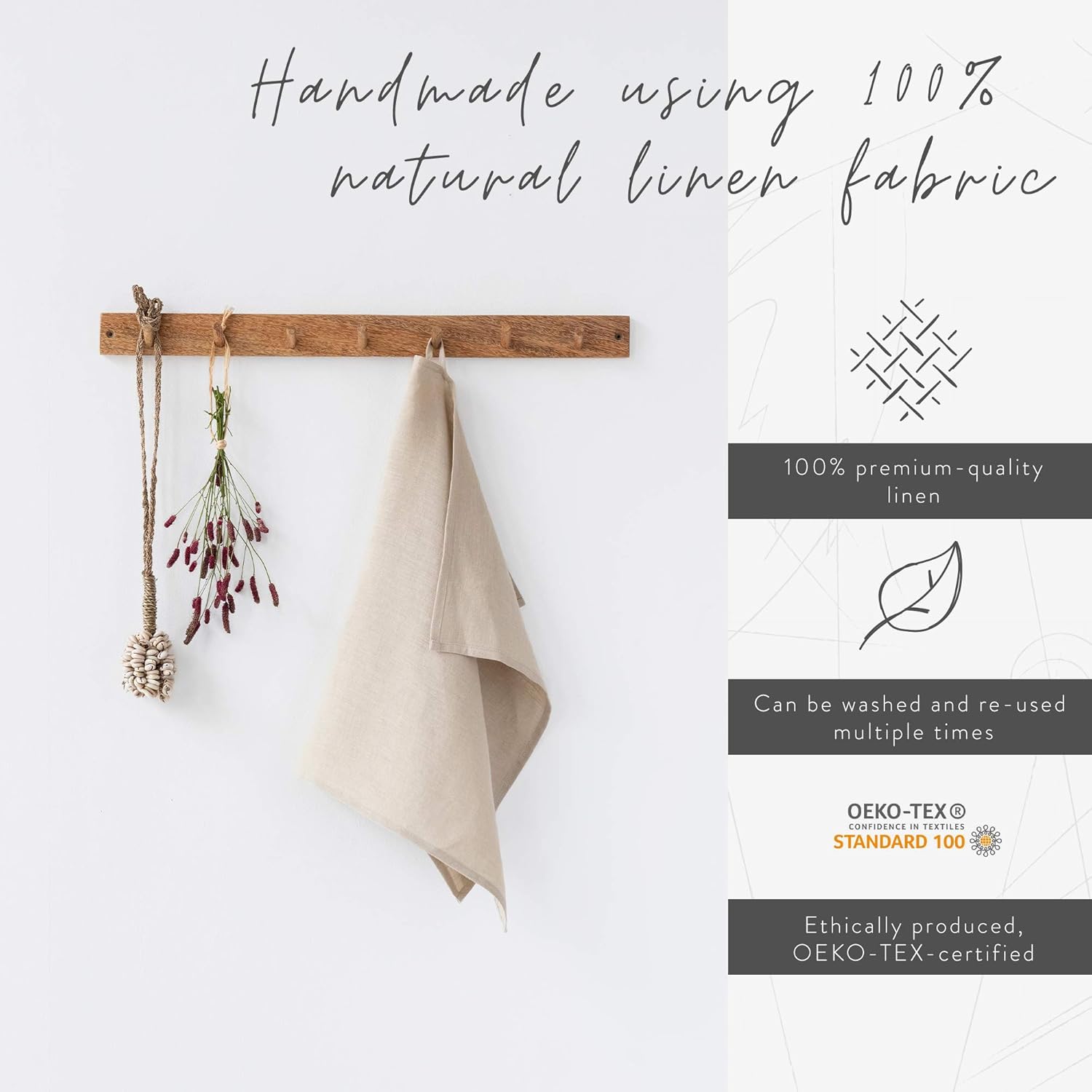 The functional design provides a Smart Swap for efficiency, as the thin, high-quality linen fibers absorb moisture rapidly and dry significantly faster than thick cotton or plastic blends.