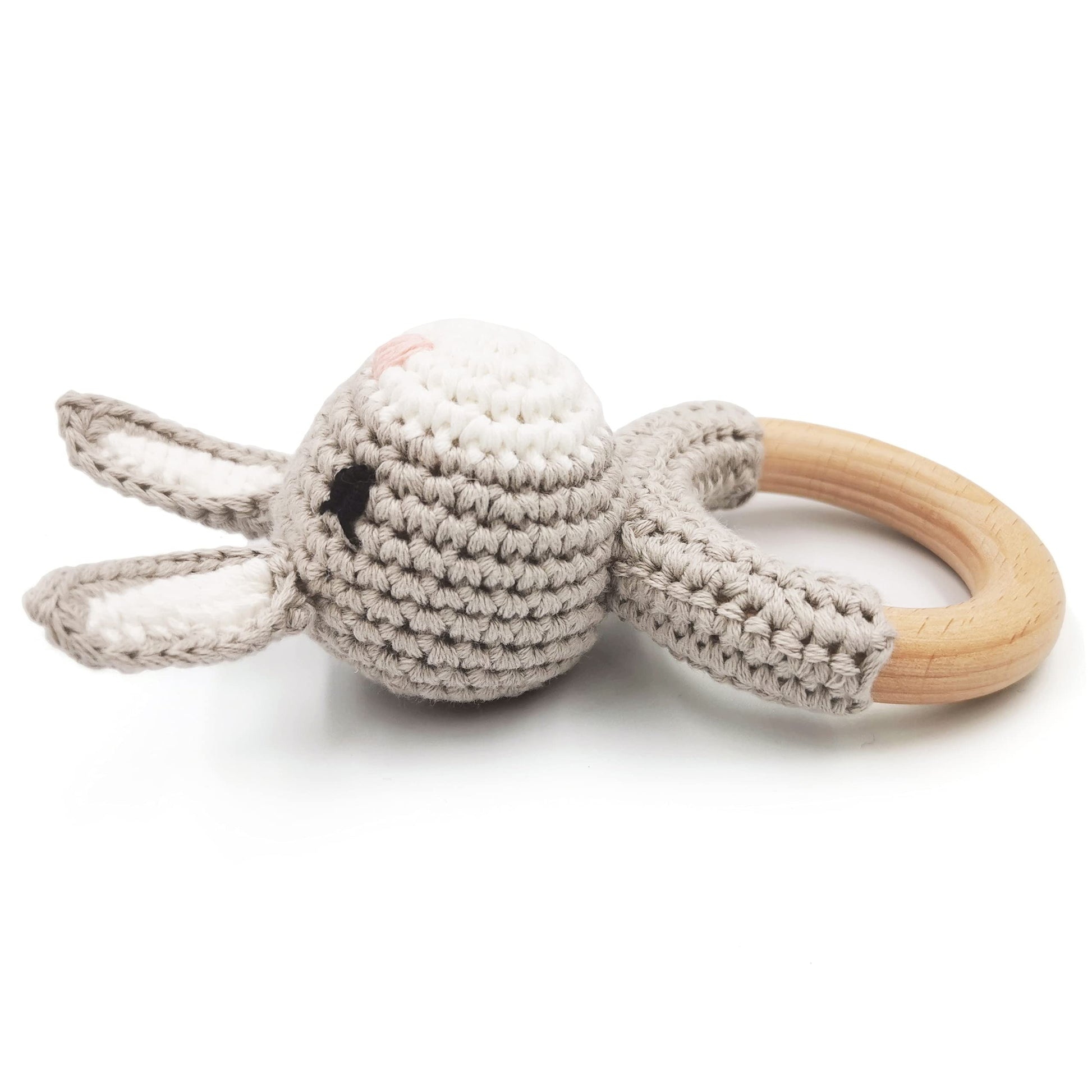 The Joliecraft Elephant Rattle system utilizes 100% natural soft cotton yarn and a high-quality beechwood ring to ensure your baby’s oral and sensory exploration is free from the petroleum-based plastics and synthetic dyes that act as "chemicals that mess with your body's natural rhythm." This structural choice provides a 5-inch tall, handmade shaker that is perfectly sized for small hands to grasp and explore. By prioritizing organic fibers and raw hardwood over industrial polymers, Joliecraft ensures a clean, chemical-free environment where the gentle rattle sound promotes sensory development without the use of electronic components or toxic adhesives.