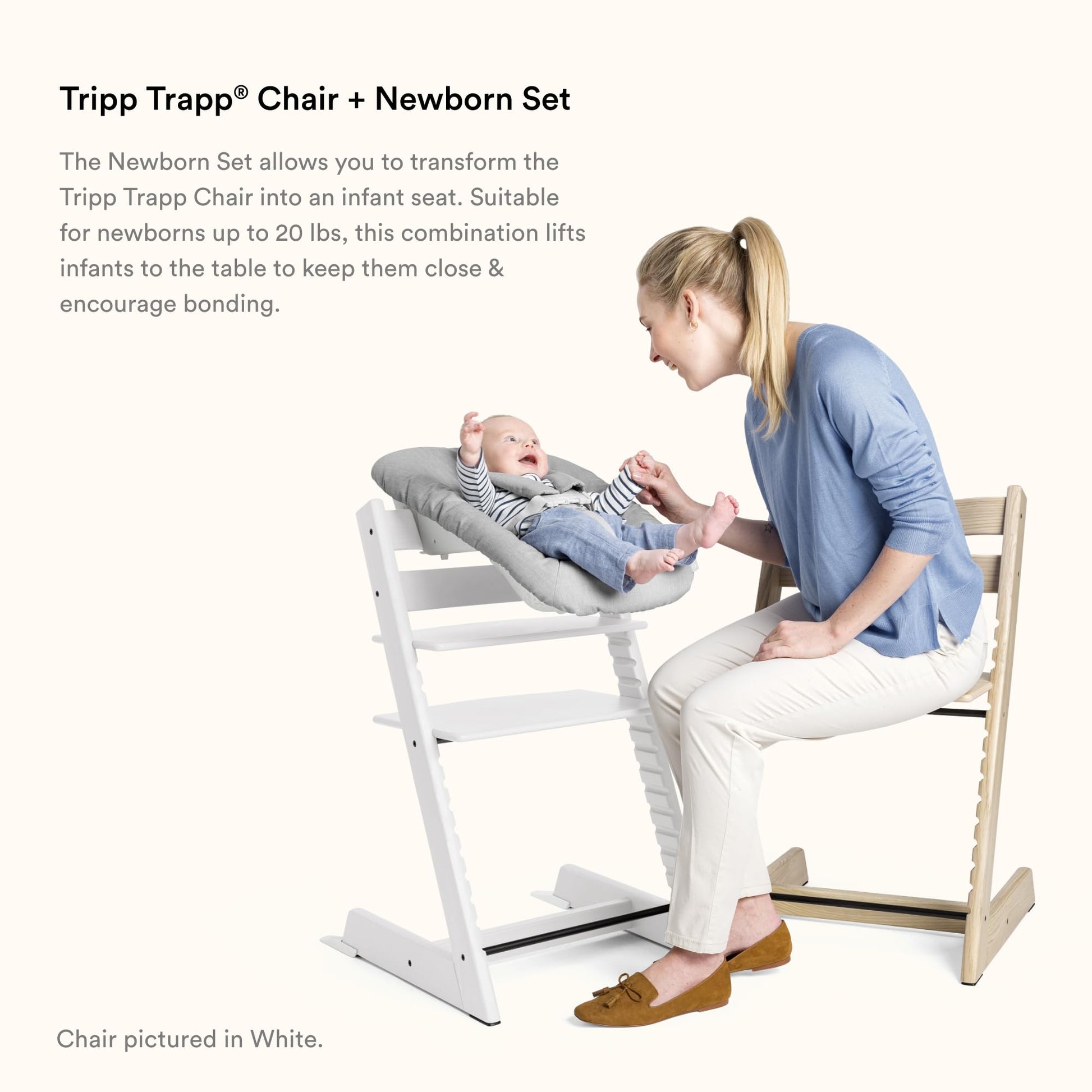 The Stokke Tripp Trapp provides TRUE biological connection by elevating your newborn to table height, fostering eye contact and social development from the very first week. This intentional design brings your infant into the heart of family life, supporting early cognitive and emotional milestones. The solid European beechwood frame provides a stable, chemical-free foundation, while the Newborn Set offers a cozy, nest-like environment that supports your baby’s developing spine. By utilizing high-quality textiles rather than toxic foam paddings, it ensures a clean environment protected from "chemicals that mess with your body's natural rhythm."