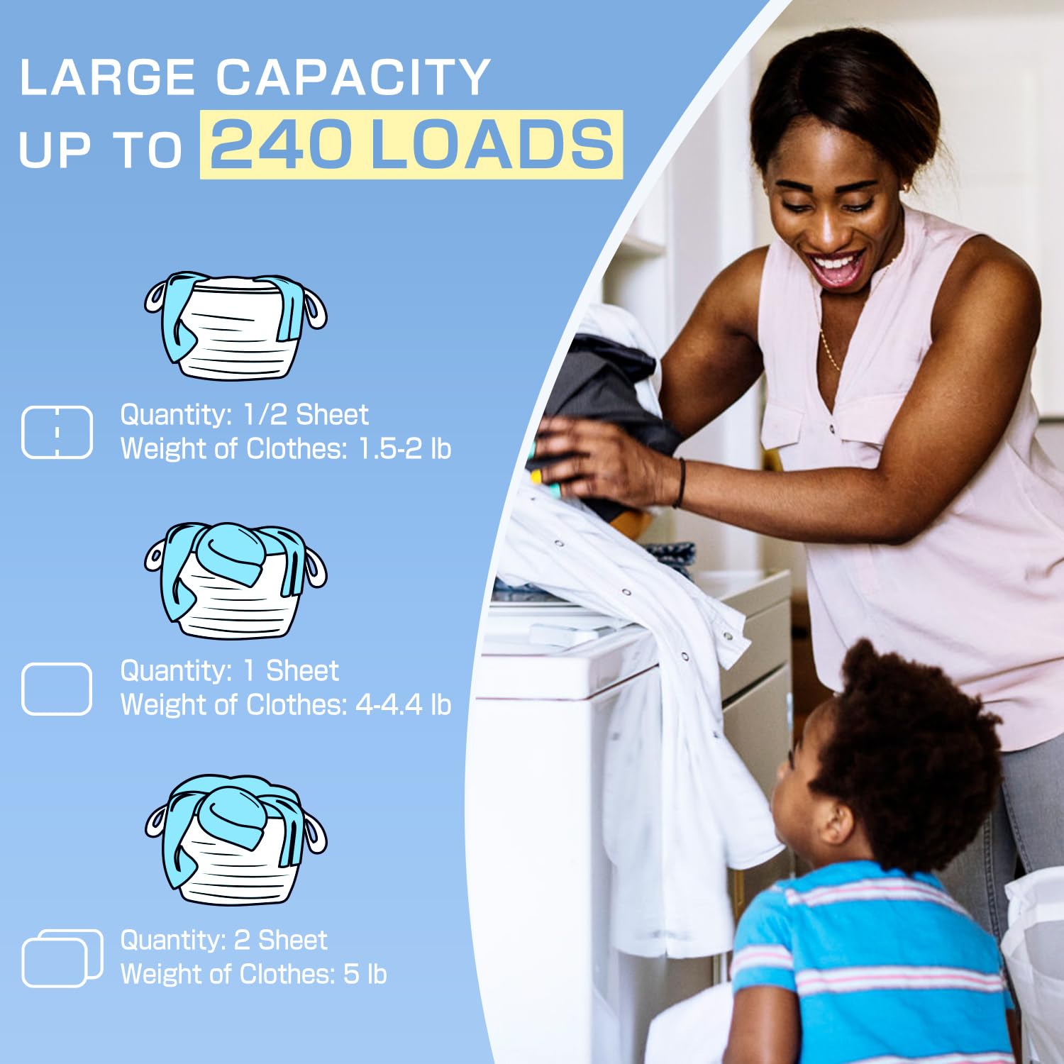 This high-yield package offers a functional Healthy SHIFT, providing enough detergent for months of laundry in one lightweight, space-saving box.